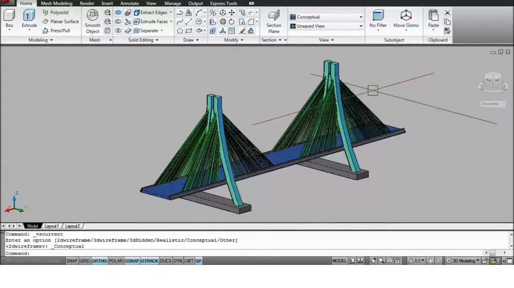 Fusion 360’ın aksine, AutoCAD’in çalışma modeli biraz farklıdır. AutoCAD, 2B ve 3B modelleme seçeneklerine sahiptir, ancak 3B çoğunlukla görselleştirme amacıyla kullanılır ve tüm modelleme ve boyutlandırma 2B ortamında yapılır.