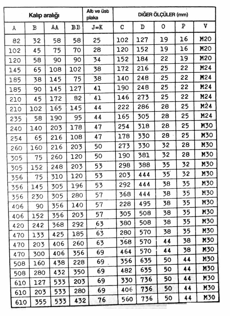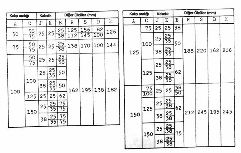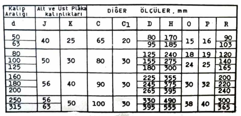 - Kalıp Alt ve Üst Plâka biçimleri,