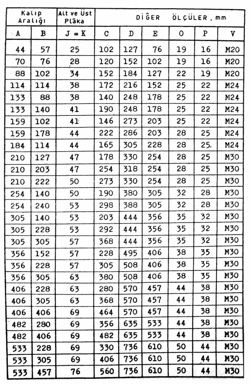 - Kalıp Alt ve Üst Plâka malzemesinin cinsi ve özellikleri.